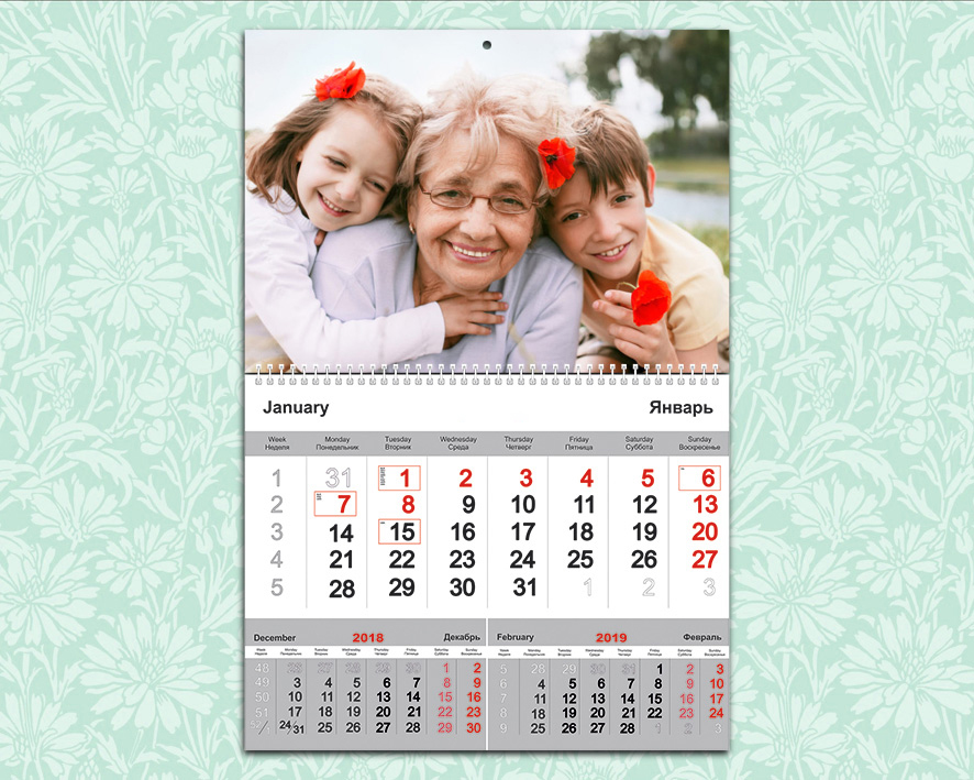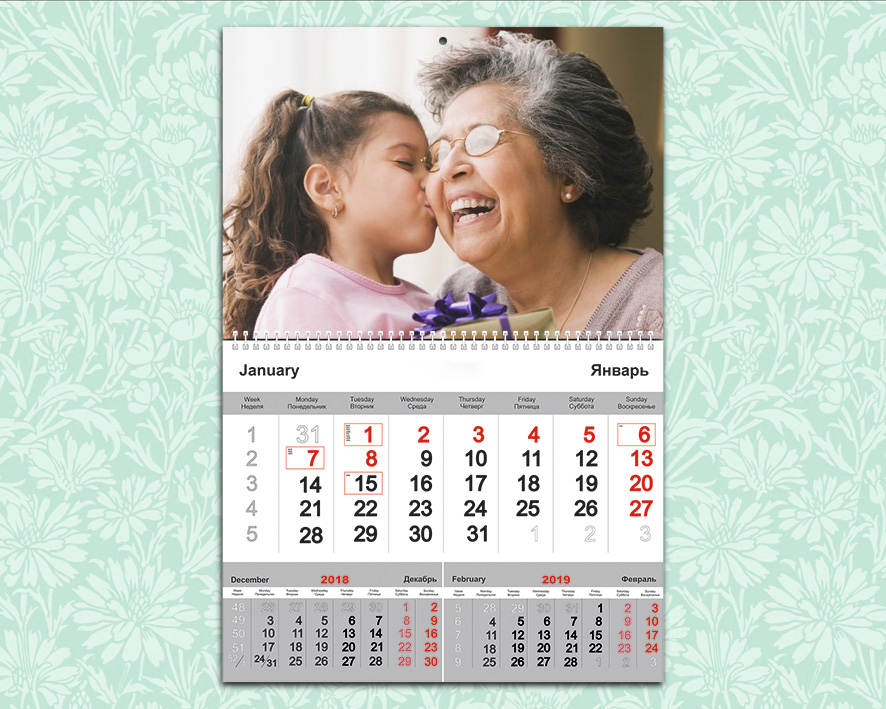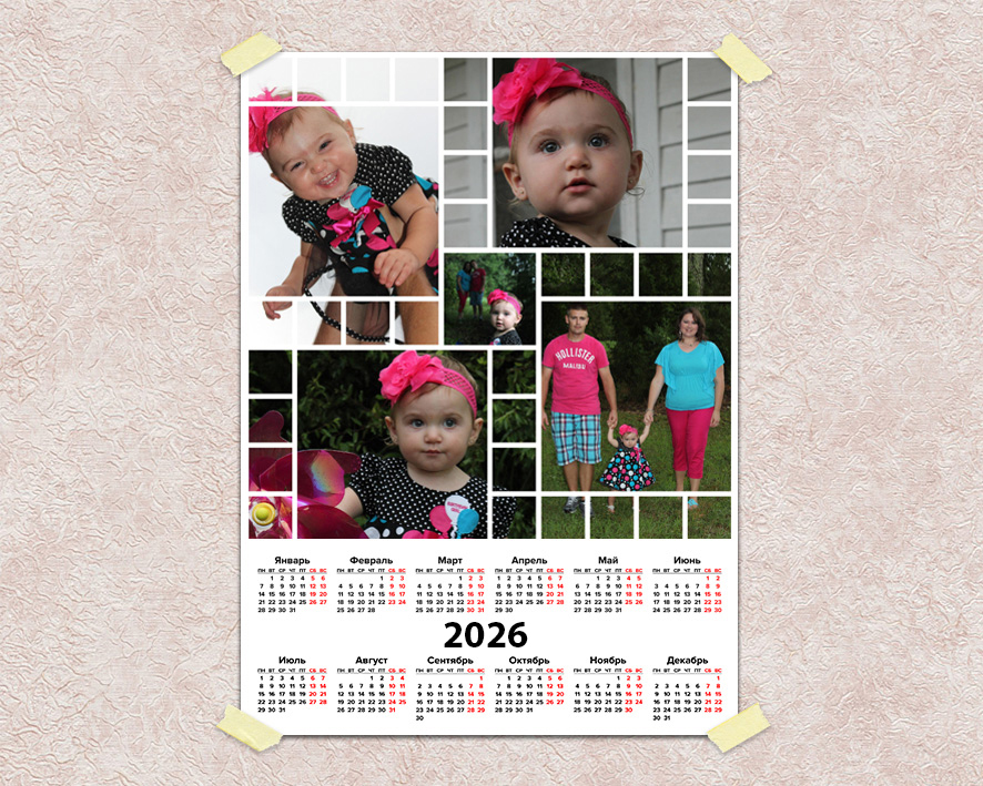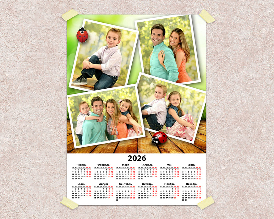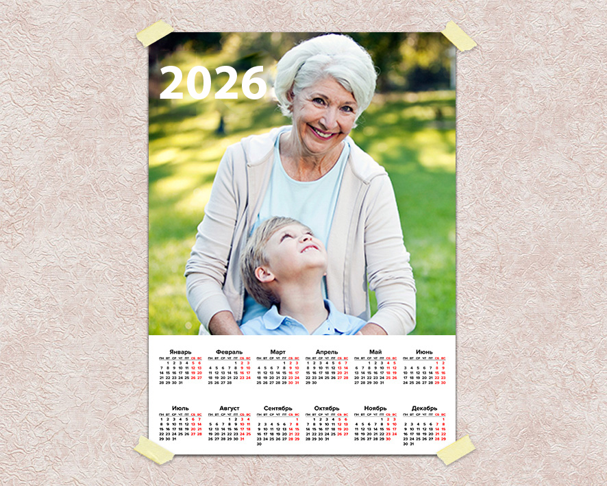 Настенный календарь на год — это плакат с напечатанной календарной сеткой, а большую часть постера занимает яркое изображение, которое не должно быть скучным, потому что настенный календарь обычно находится в течение целого года перед глазами, напоминает о значимых событиях и важных датах или позволяет вспоминать приятные моменты, связанные с изображением. Кроме того, фирменный настенный календарь на 2026 радует яркими картинками вашего бизнеса, рекламирует его и привлекает внимание клиентов. В последнее время популярными настенные календари с рамкой. Это и стильный дизайн, и украшение интерьера, а иногда составляется композиция из нескольких настенных календарей на полугодие или квартал. Нередко такой настенный календарь радует даже по истечению года.