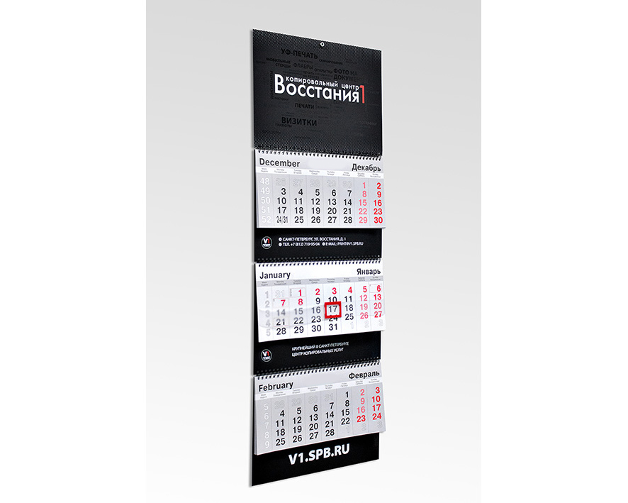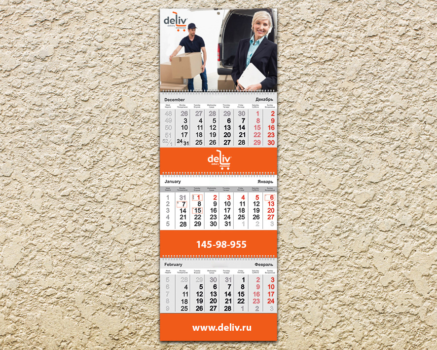 Квартальный календарь поделён на три части – месяцы квартала, и это очень удобно, потому что все важные даты, ответственные мероприятия и другие значимые события всегда у вас перед глазами, а при необходимости можно сделать пометки. Цифры квартального календаря крупные, их хорошо видно издалека, а курсор показывает нужную дату. Такие календари также удобны для размещения Вашей рекламы, логотипов, символики и другой информации. А квартальные календари премиум, с печатью белой краской и выборочным лаком — это лучший подарок для ваших друзей или партнеров по бизнесу, показывающий ваш статус и стиль компании.
